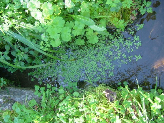As plantas aquáticas têm adaptações interessantes como espaços ocos dentro das folhas, que lhes permitem flutuar para aproveitar melhor o sol, como as colheres (Potamogeton nodosus) e a lentilha de água maior (Lemna gibba), ou dentro dos caules, como acontece com a serralha-da-água (Groenlandia densa), o agrião-de-água (Nasturtium officinale) a rabaça (Apium nodiflorum), a verónica (Veronica catenata), a junça (Cyperus longus), e a menta aquática (Mentha aquatica). Nestas águas calcárias são também frequentes algas do género Chara que, pelo seu tamanho e aspecto ramificado, facilmente são confundidas com plantas superiores. Algumas plantas aquáticas podem ter diferentes tipos de folhas na mesma planta, como é o caso do ranúnculo (Ranunculus peltatus) que tem folhas finas como cabelos na parte submersa e folhas flutuantes à superfície, formando um bonito tapete de flores brancas que cobre o Rio dos Mouros na primavera.